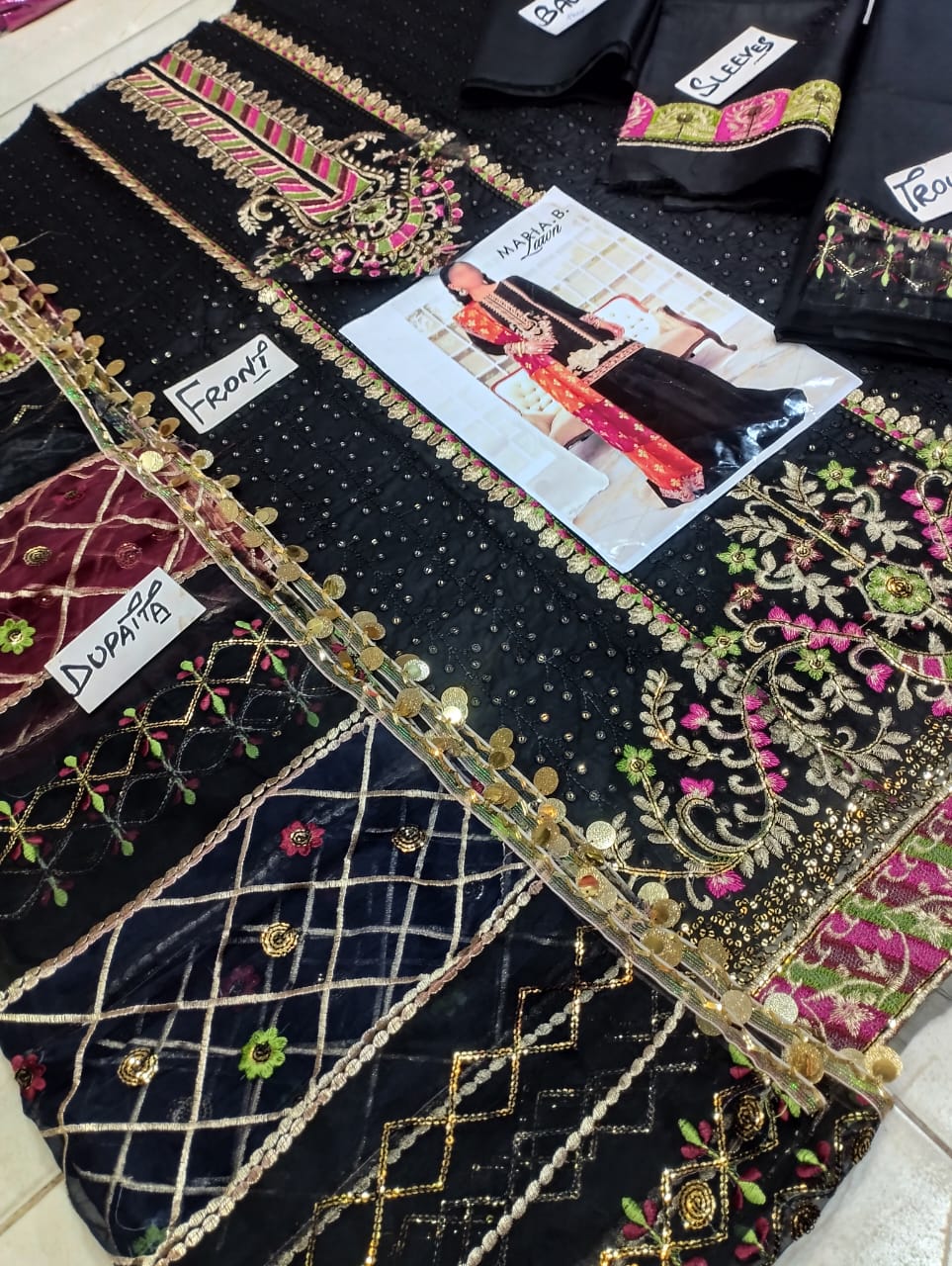 FRONT FULL EMBROIDED SEQUENCE WORK WITH HEAVY EMBROIDED NECK PATCH AND DAMAN BORDER